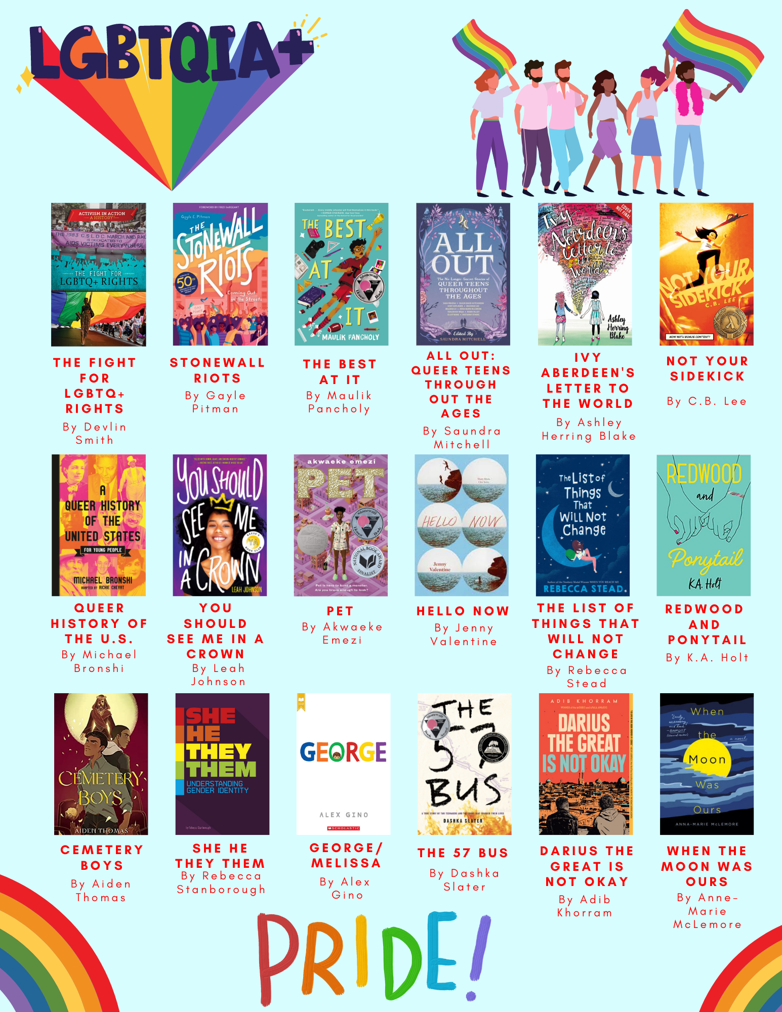 These books represent LGBTQIA+ students in an affirming manner. Lists include Middle Grade and Young Adult novels.