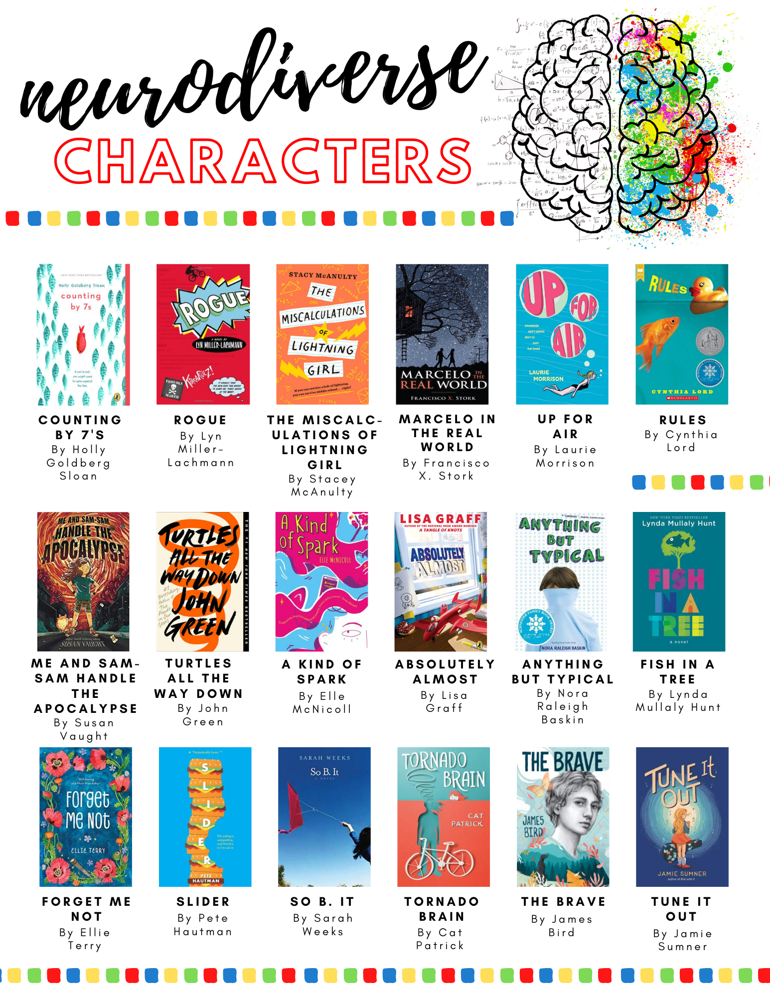 These lists feature Middle Grades and Young Adult titles featuring neurodiverse characters, including those with OCD and ASD, as well as mental health topics, such as depression and anxiety.