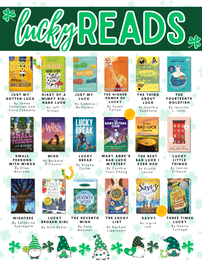 This list includes Middle Grade and Young Adult fiction titles that include the word “luck” or “lucky” in the title and/or contain themes of wishes, luck, or magic.
