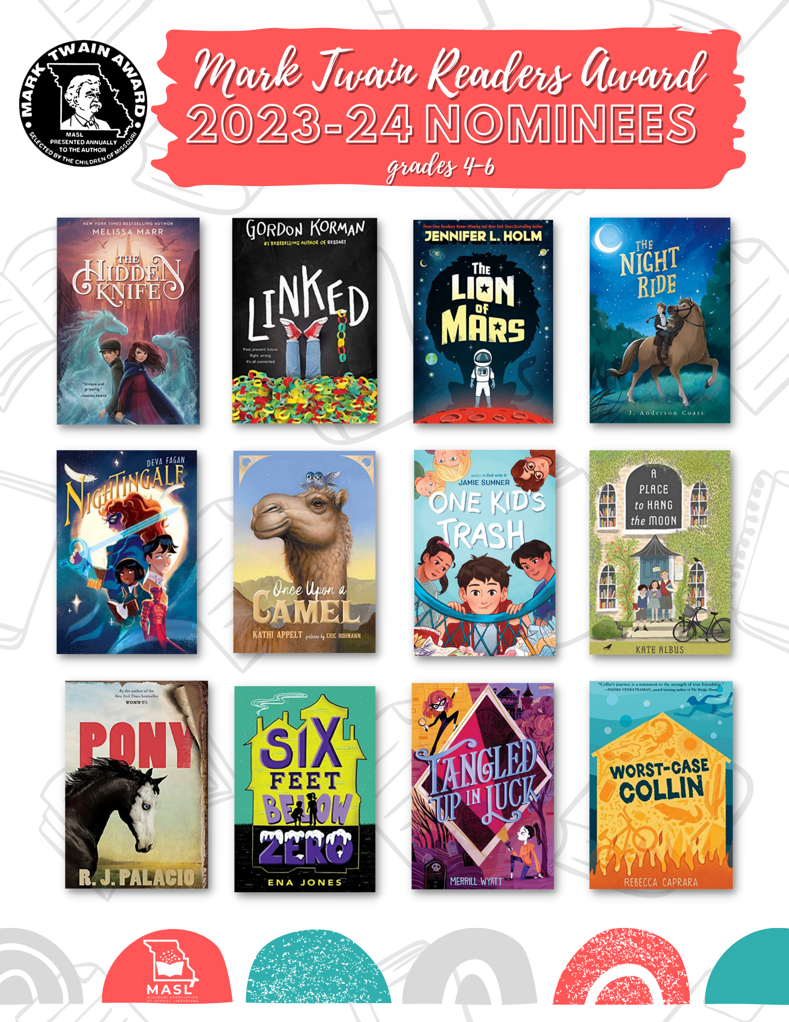 This list includes books that are 2023-24 Final Nominees for MASL’s Readers Awards. Lists include Show-Me, Mark Twain, Truman, and Gateway nominees.