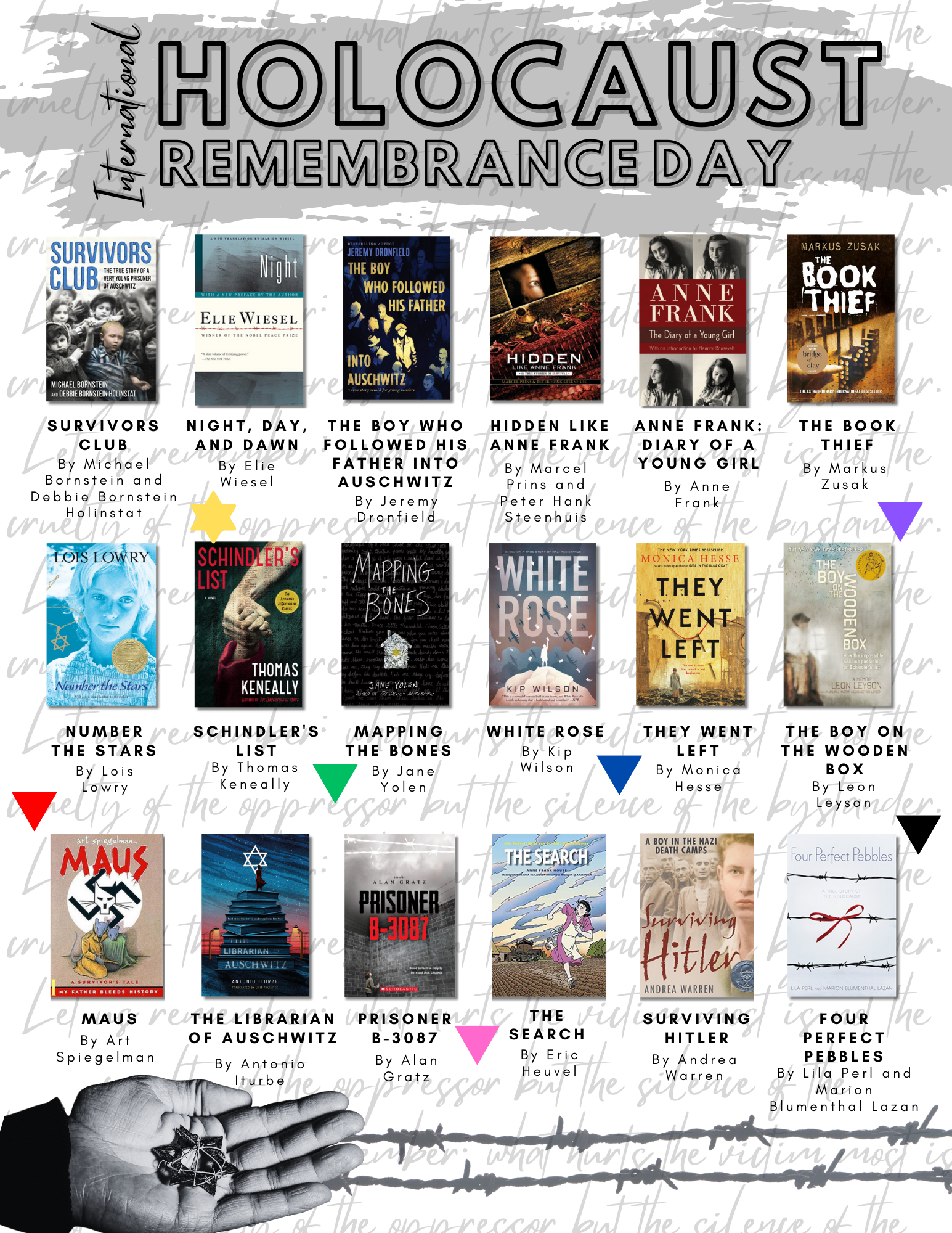 This list includes titles featuring stories of Holocaust victims and survivors. List includes Middle Grade and Young Adult Fiction and Nonfiction.