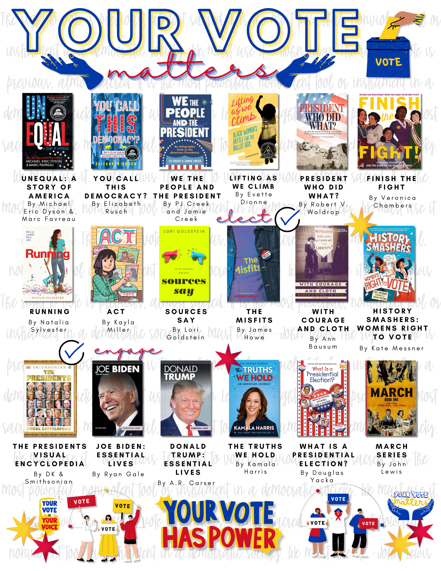 This list includes Middle Grade Nonfiction titles about voting rights, elections, and presidents as well Middle Grade Fiction titles about running for elected office.