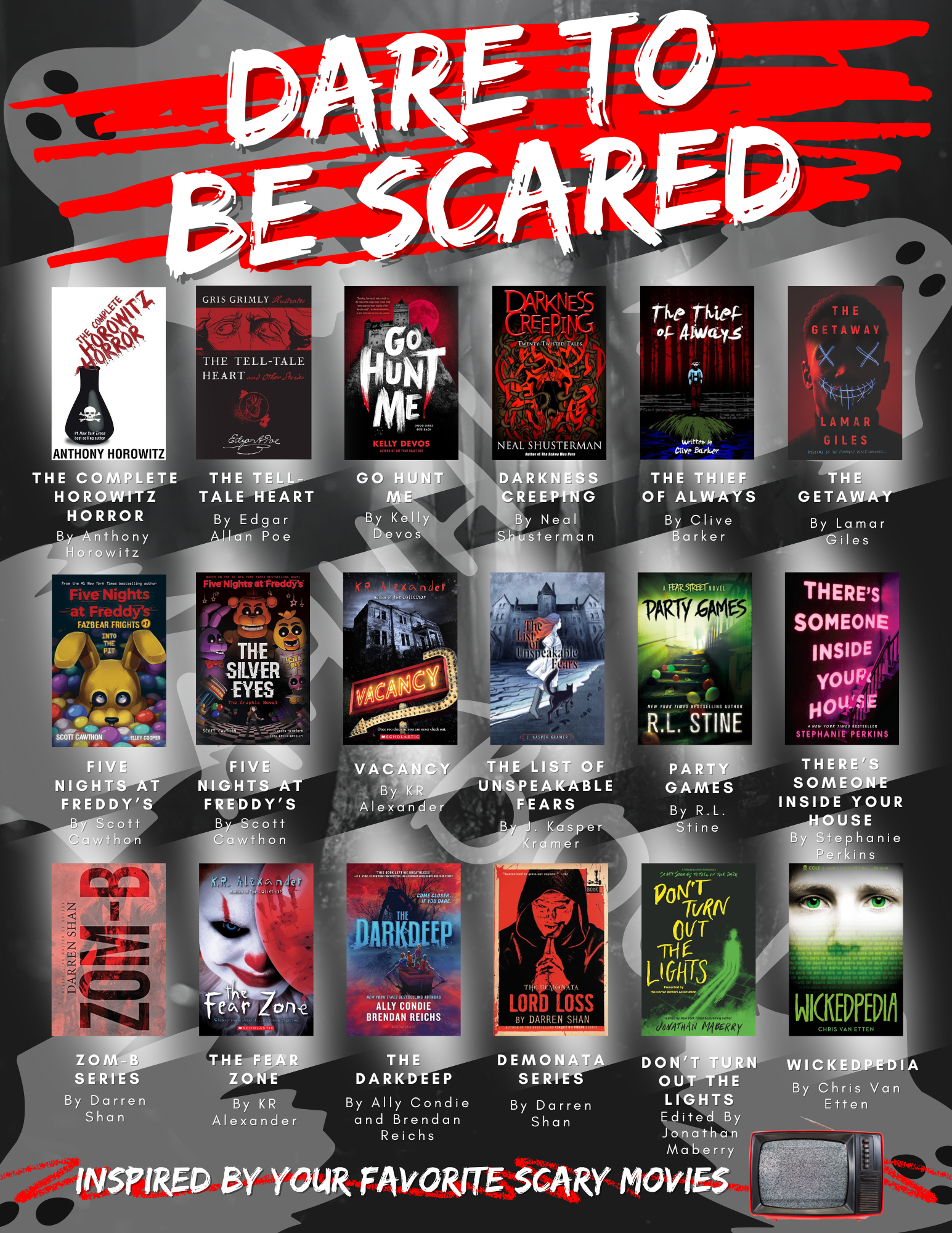 This list includes Middle Grade fiction titles in the genres of thriller, horror, and suspense. Book to movie adaptations are included.